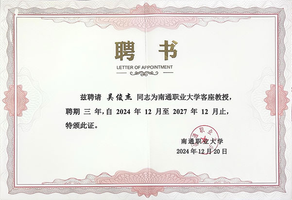 吴俊杰受聘南通职业大学客座教授 助力艺术与…