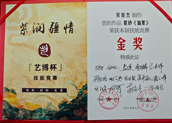 吴俊杰紫砂作品《仙果》 摘得2025“紫润疆情——艺博杯” 技能竞赛金奖