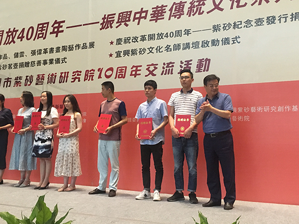 庆祝改革开放40周年——宜兴市大红袍紫砂研究所参加紫砂壶纪念捐赠仪式