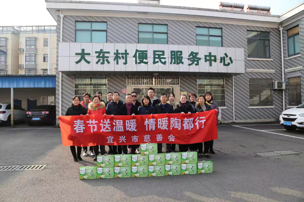 宜兴市大红袍紫砂研究所和宜兴市民政局慈善总会举行"春节送温暖,情暖陶都行"活动