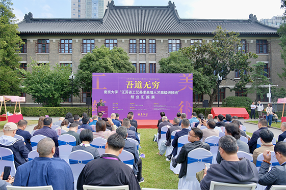 2024年10月31日上午,江苏艺术基金2024年度艺术人才培养资助项目“江苏省工艺美术高端人才高级研修班”结业典礼暨“吾道无穷——南京大学江苏省工艺美术高端人才高级研修班结业汇报展”开幕式在南京大学鼓楼校区成功举行。